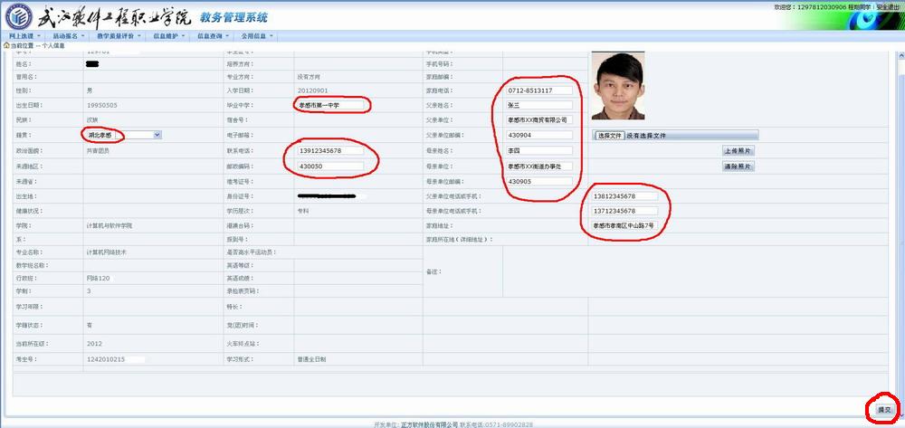 3.如图所示,空白的文本框均为必填项,包括:籍贯、毕业中学、联系电话(手机)、邮政编码、家庭电话、父亲姓名、父亲单位、父亲单位邮编、母亲姓名、母亲单位、母亲单位邮编、父亲单位电话或手机、母亲单位电话或手机、家庭地址。