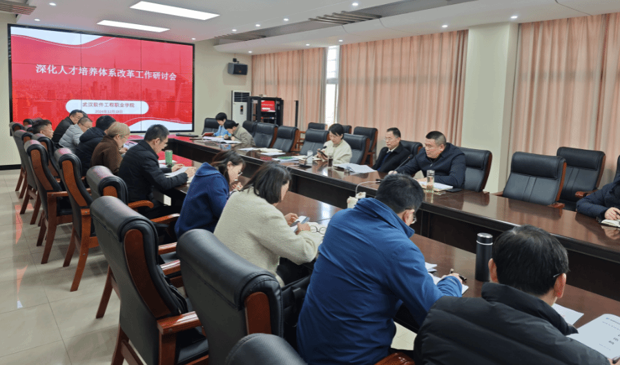 (通讯员:何本琼)为深入贯彻国家关于职业教育改革与发展的战略部署,坚持需求导向,坚持产教融合,进一步加强专业群建设、优化专业结构布局,推动学校高质量特色发展。12月18日上午,学校在综合楼三楼会议室召开武汉软件工程职业学院人才培养体系改革工作研讨会。校长蒋兴鹏、副校长王中林出席会议,党委组织部、党委学生工作部、党委教师工作部、招生与就业工作处、教务处等12个职能部门负责人、13位二级学院院长参加会议,会议由副校长王中林主持。