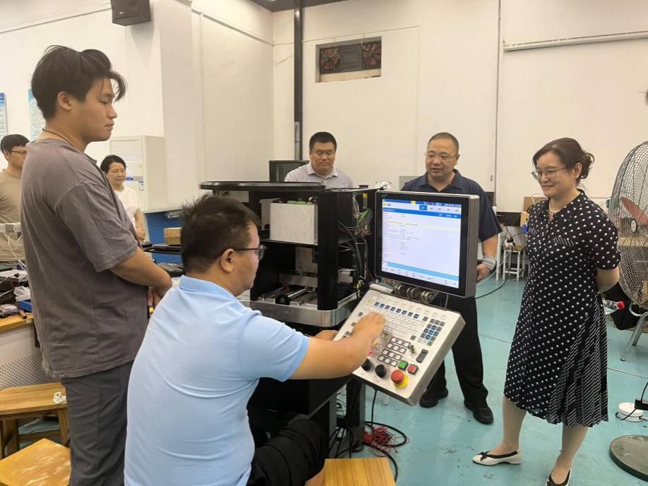 最后,校领导一行来到机械学院机械设计与制造赛道备赛现场。刘校长详细了解作品的背景和定位,肯定大家的作品与辛勤付出,叮嘱团队在比赛中突出作品优势、提炼创新点;王校长提出要进一步提升智能化水平、把技术做扎实,希望尽早形成成果转化。