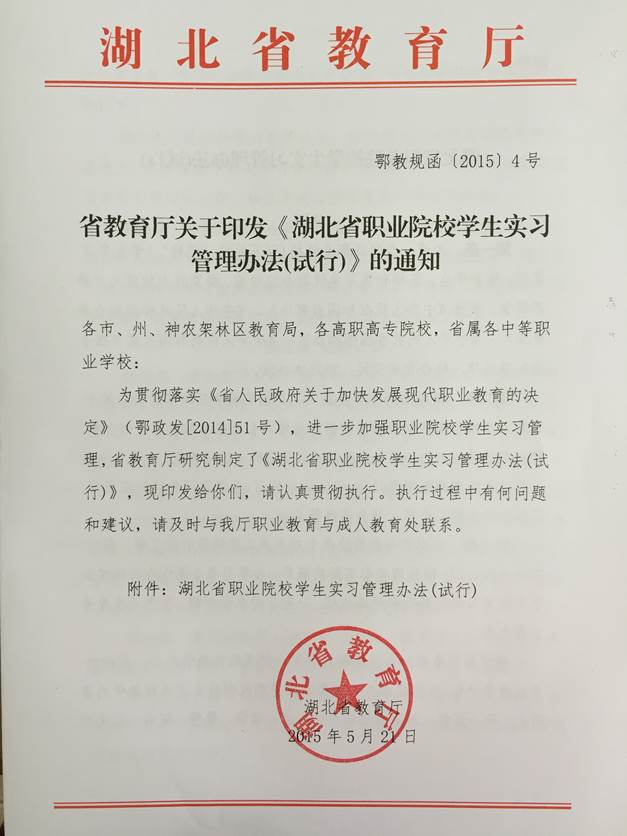 湖北省职业院校学生实习管理办法(试行)